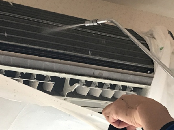 - 家庭用エアコンの場合、本体基盤などが水でショートしないよう養生し保護します。