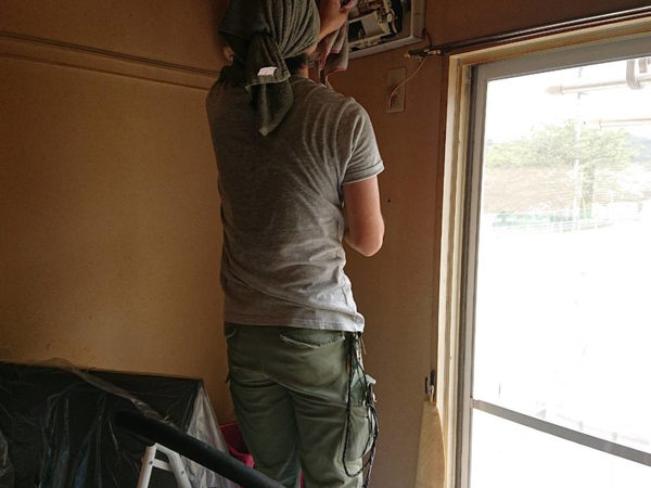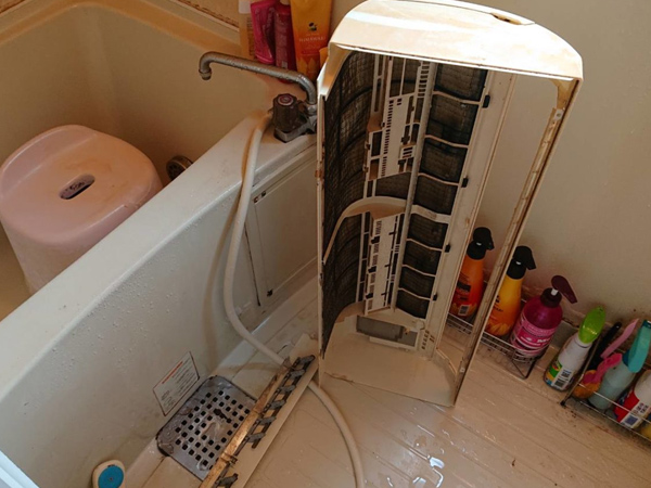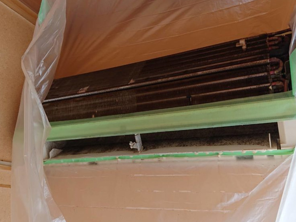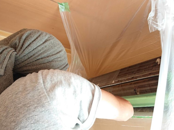 - 家庭用エアコンの場合、本体基盤などが水でショートしないよう養生し保護します。